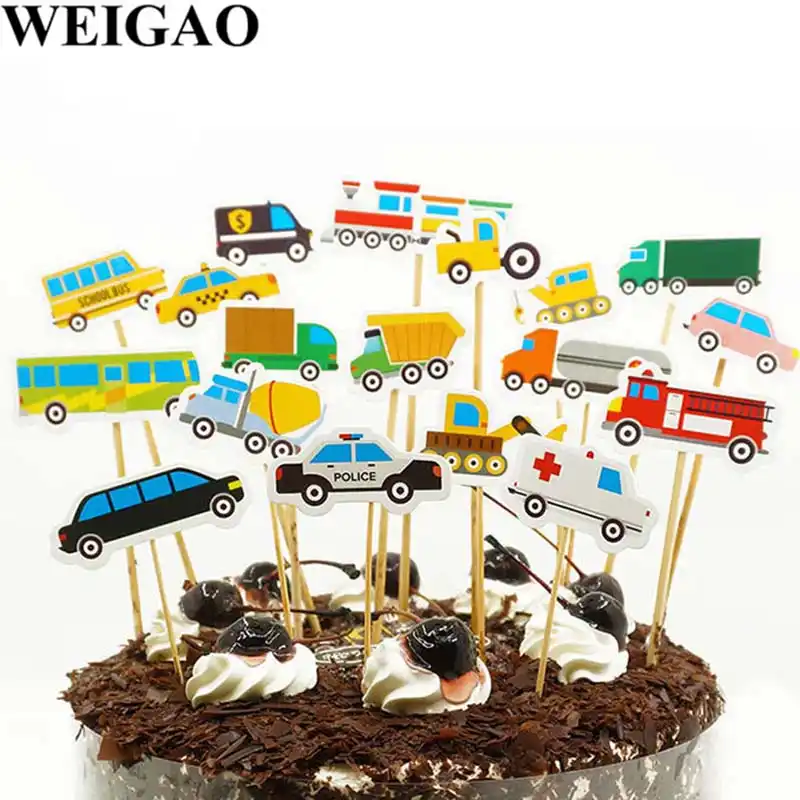 Weigao Anak Ulang Tahun Kue Toppers Mobil Lalu Lintas Bus Bentuk Topper Kue Ulang Tahun Anak anak Kue Dekoratif Bendera Tanda Baby Shower Dekorasi| | - AliExpress