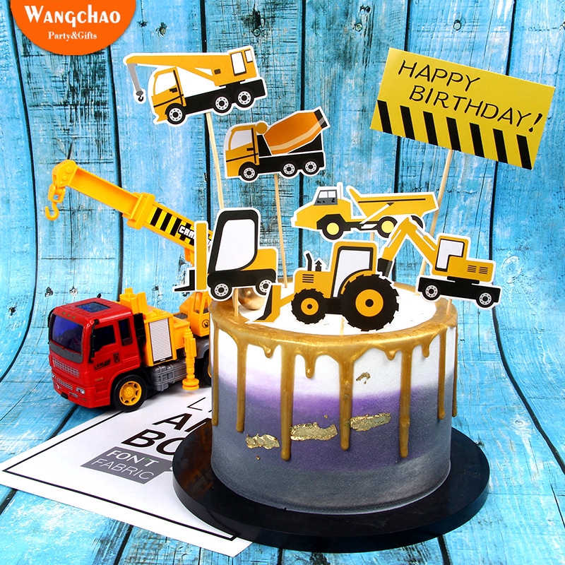 Partai kue ulang tahun dekorasi mainan anak-anak adegan kendaraan dekorasi kue excavator excavator f | Shopee Indonesia