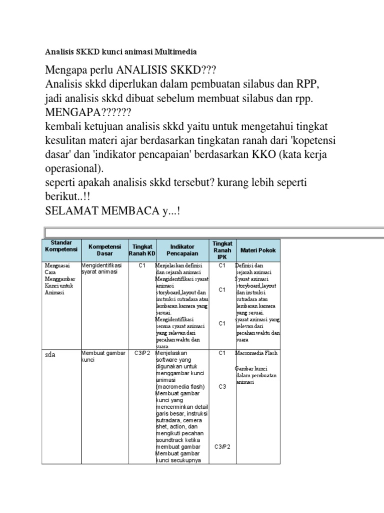 Analisis SKKD Kunci Animasi Multimedia