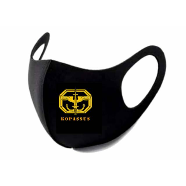 Masker Korea Bahan Kain Scuba Hitam Logo Kopassus TNI AD | Shopee Indonesia