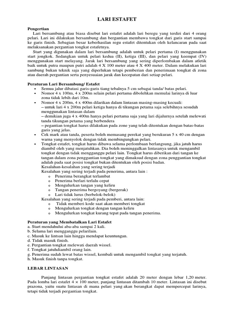 Rangkuman Lari Estafet.docx - Rangkuman Lari Estafet Nama Raditya Kelas XII IIS 4 Lari sambung atau lari estafet adalah salah satu lomba lari pada | Course Hero
