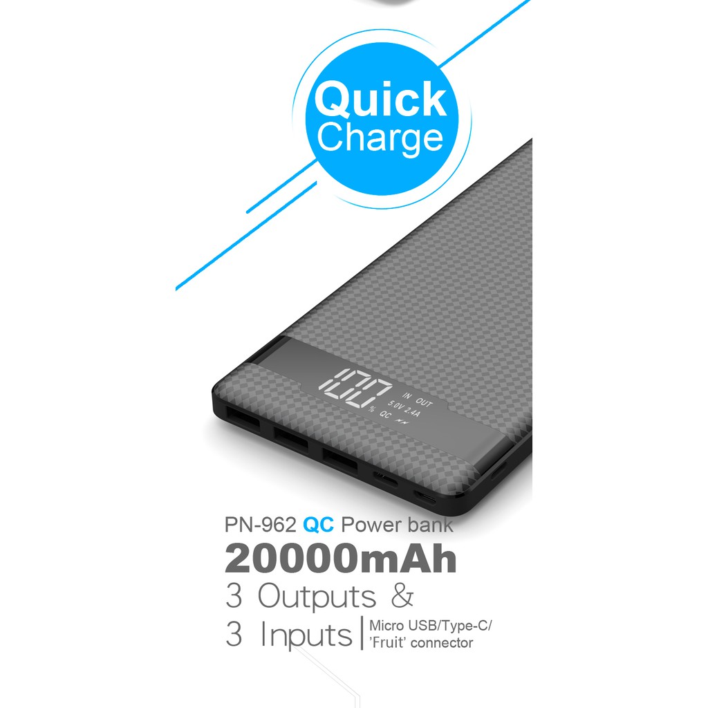 Pineng PN-962 Quick Charge 3.0 Micro USB Lightning Type C Input (20000mAh) PN962 | Shopee Malaysia