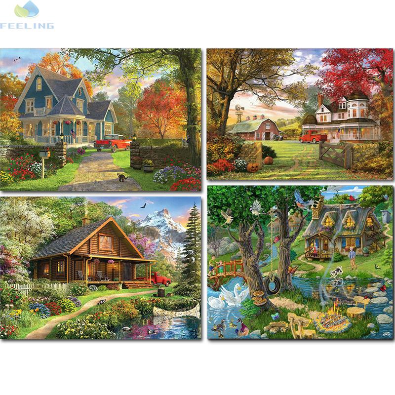 Berlian kerajinan bordir pemandangan desa rumah berlian kerajinan mosaik gambar pohon sungai icon rhinestones lukisan menjahit|rhinestone painting|mosaic picturesdiamond embroidery - AliExpress