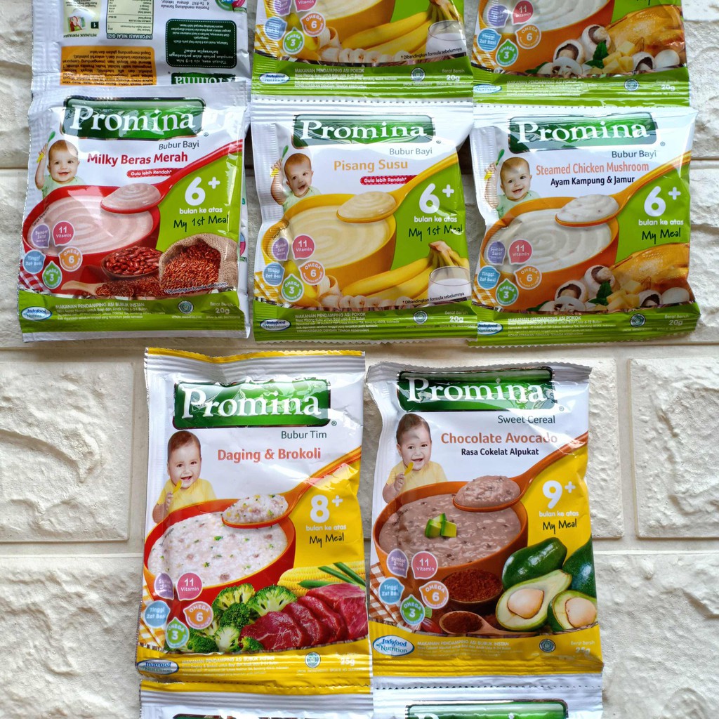 Promina Bubur Tim Bayi Cereal Sachet 20gr 25gr Makanan mpasi Baby 6+ 8+ 9+ usia 6 8 9 bulan ke atas | Shopee Indonesia