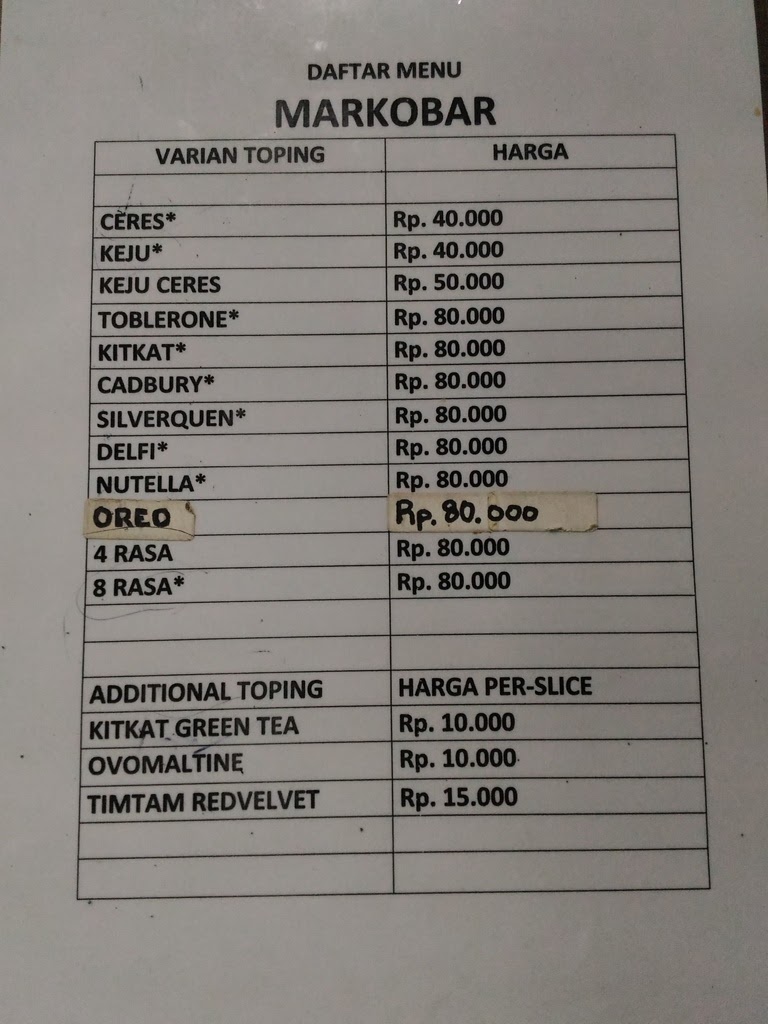 Info Terbaru Harga Menu Martabak Manis Markobar | Daftar Harga & Tarif