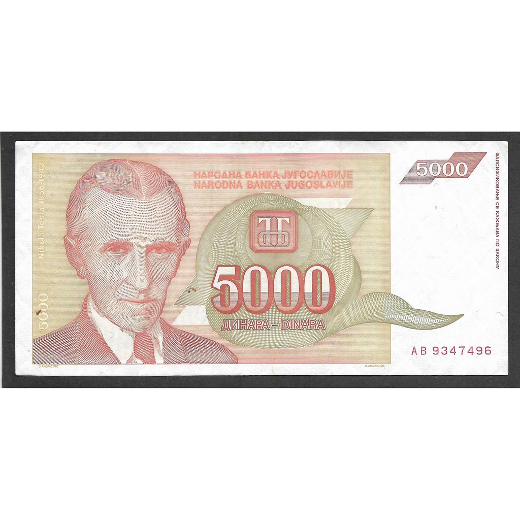 Uang Kertas Yugoslavia 5.000 Dinara 1993 Nikola Tesla XF Bagus | Shopee Indonesia
