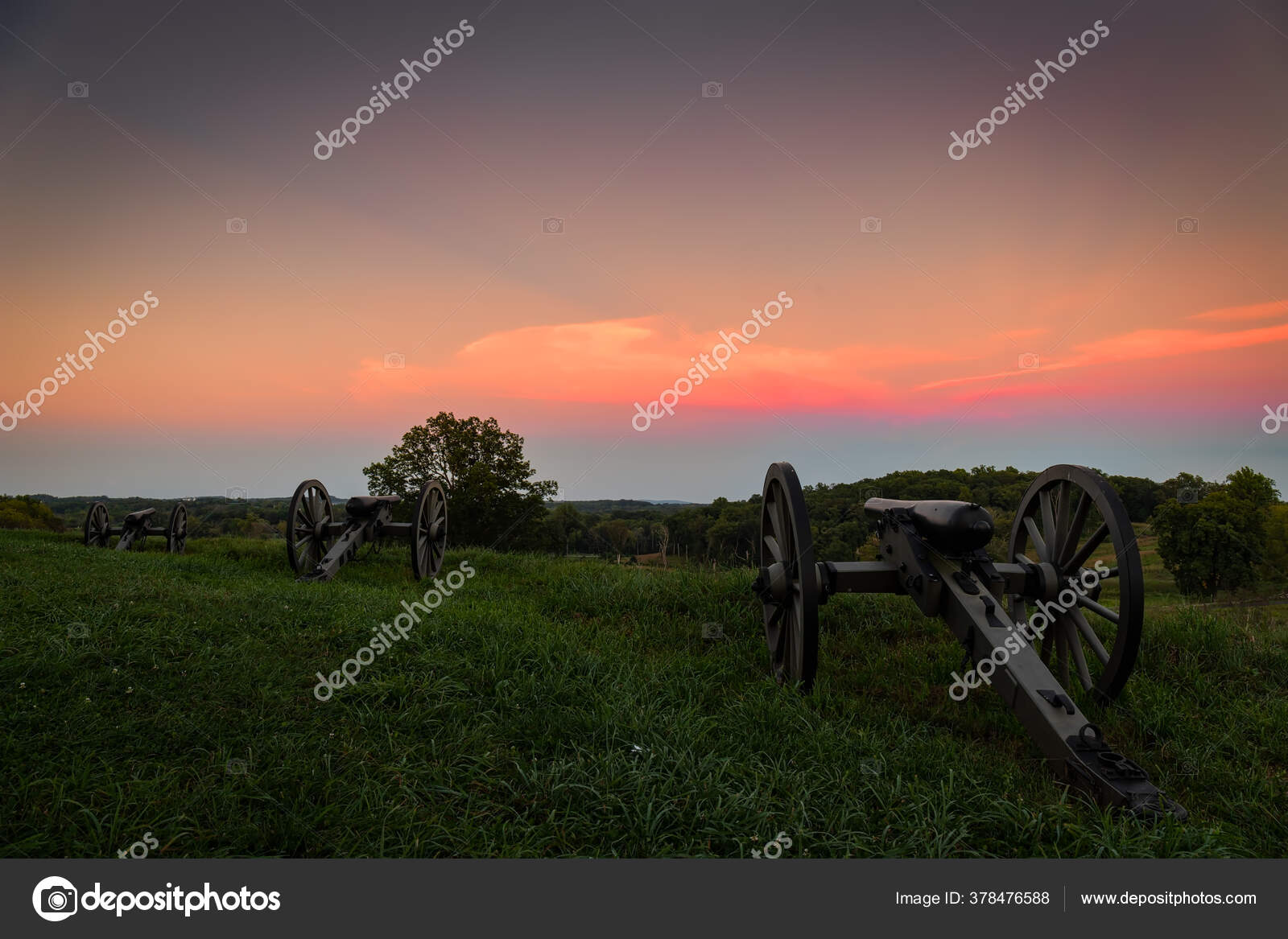 Sore Hari Matahari Terbenam Pada Trio Meriam Perang Saudara Amerika — Stok Foto © william.chizek@gmail.com #378476588