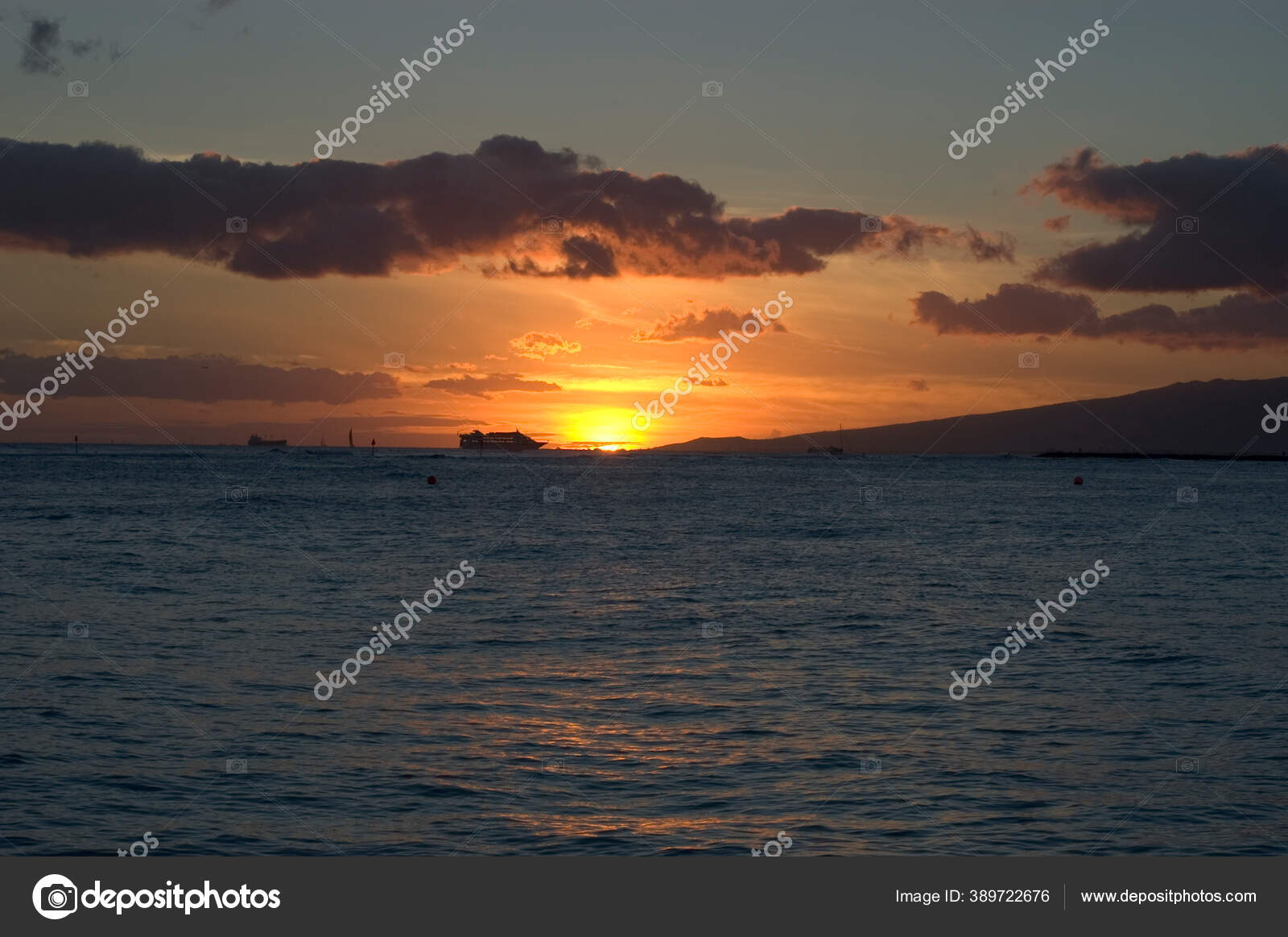 Sebuah Matahari Terbenam Pantai Waikiki — Stok Foto © ScubaBiker #389722676