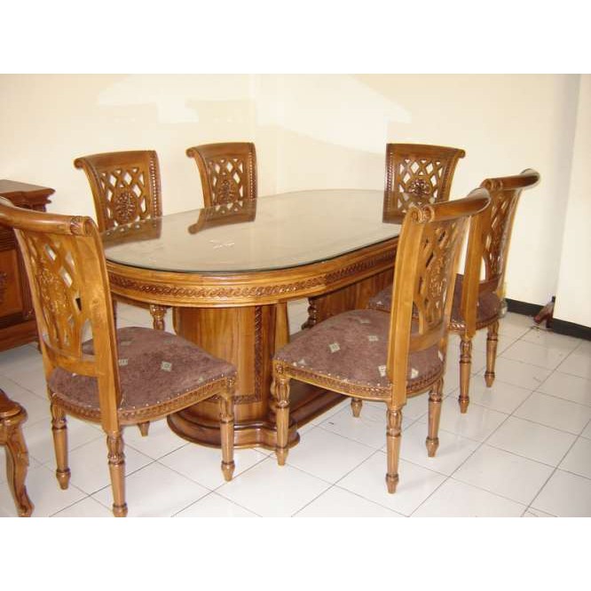 Jual Meja Makan Jati Kursi 6 Dining Table Furniture Kayu Jati Jepara Ukiran - Kab. Jepara - sekarjatijaya | Tokopedia