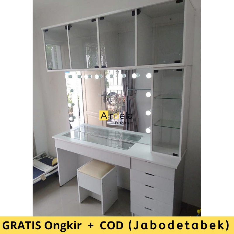 Meja Rias Vanity Mirror Dengan Kabinet Kaca Ukuran Besar Paket Meja Makeup Mewah Cermin Lampu LED | Shopee Indonesia