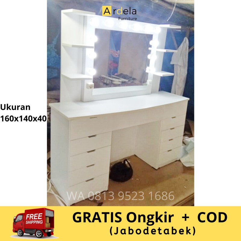 Meja rias artis lampu led duco putih /meja rias minimalis | Shopee Indonesia