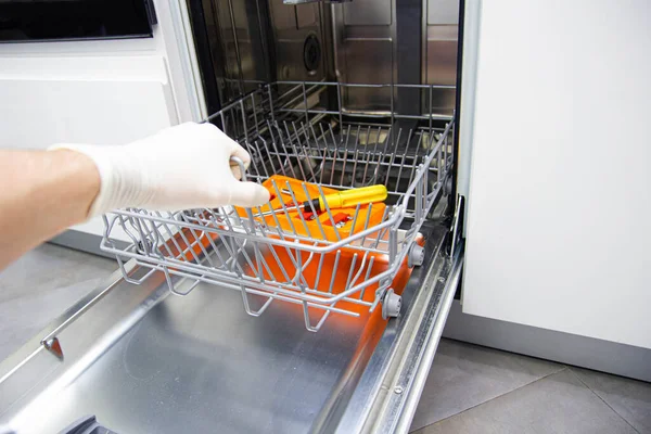 Memperbaiki Mesin Cuci Piring Modern Dengan Obeng Dapur — Stok Foto © velimirisaevich #377555216