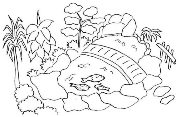 Gambar Mewarnai Taman Dengan Kolam Ikan • BELAJARMEWARNAI.info