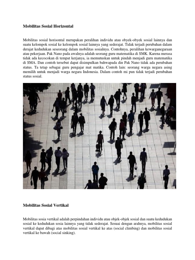 Contoh contoh dan bentuk bentuk mobilitas sosial -mobilitas sosial horizontal -mobilitas sosial - Brainly.co.id