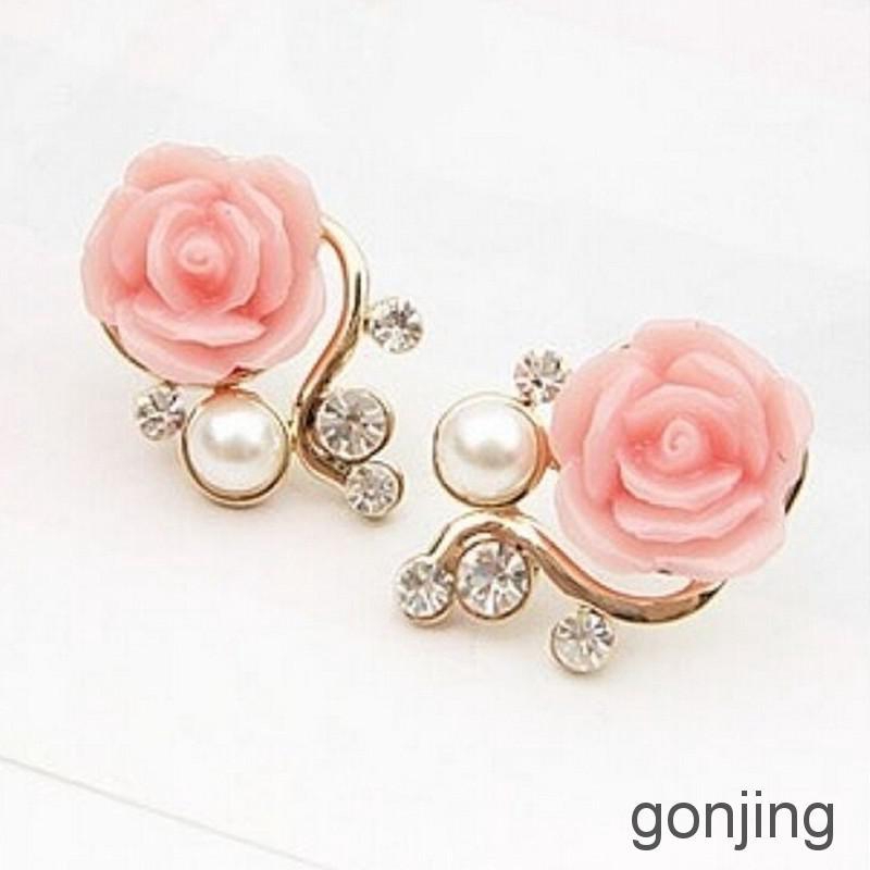 GONJING Anting Giwang Model Bunga Mawar dengan Mutiara Imitasi untuk Wanita | Shopee Indonesia