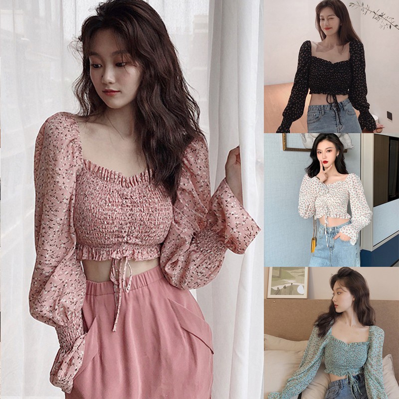 Kaos T-Shirt Wanita Model Crop-Top Dengan Gambar Motif Floral Dan Bergaya Sexy Korea | Shopee Indonesia