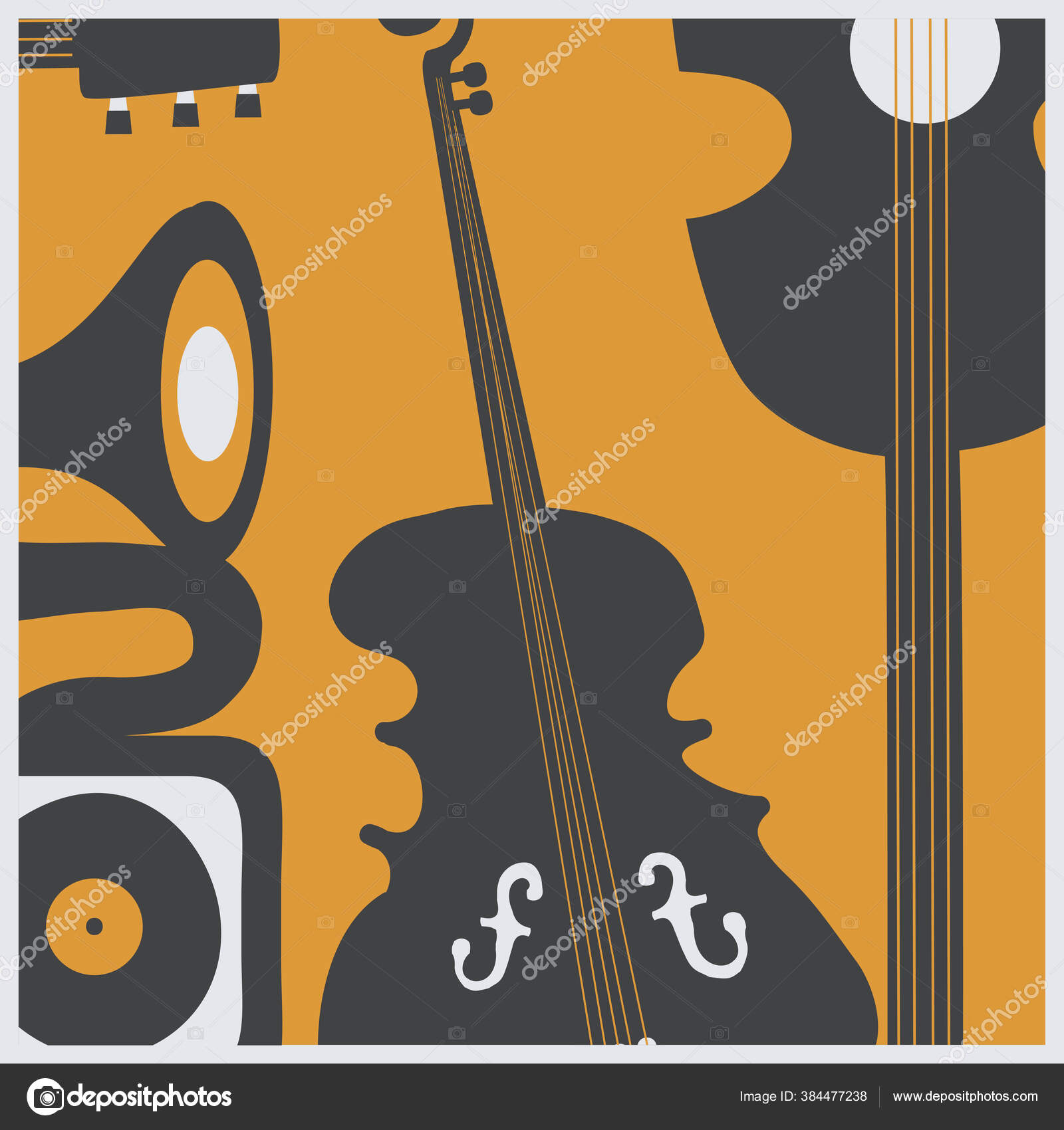 Ilustrasi Vektor Datar Berbagai Macam Toko Alat Musik Jazz Festival — Stok Vektor © Maljuk #390559114