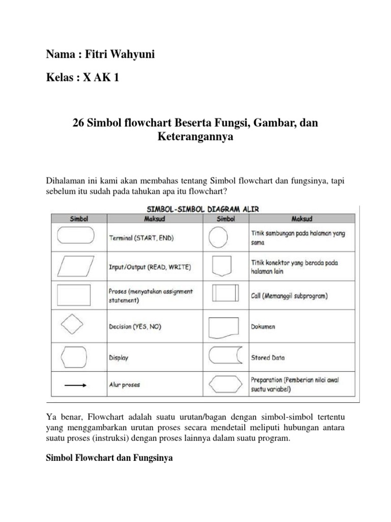 Nama: Fitri Wahyuni Kelas: X AK 1: Simbol Flowchart dan Fungsinya