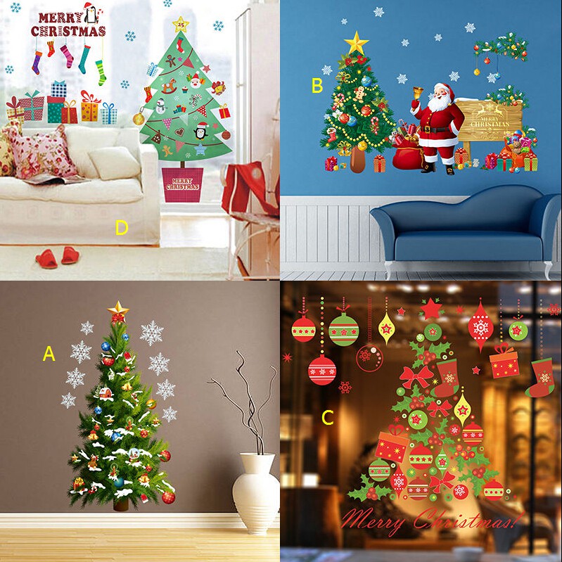 Stiker Dinding dengan Bahan Mudah Dilepas Gambar Pohon Natal dan Santa Claus untuk Dekorasi Rumah | Shopee Indonesia