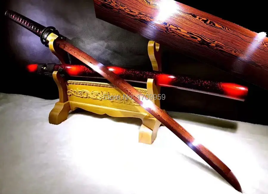 Tajam Nyata Jepang Samurai Pedang Katana Dilipat Steel Full Tang Merah Berdarah Pisau Tinggi Quallty Dekorasi Rumah Hadiah Pisau Pedang|Pedang| - AliExpress
