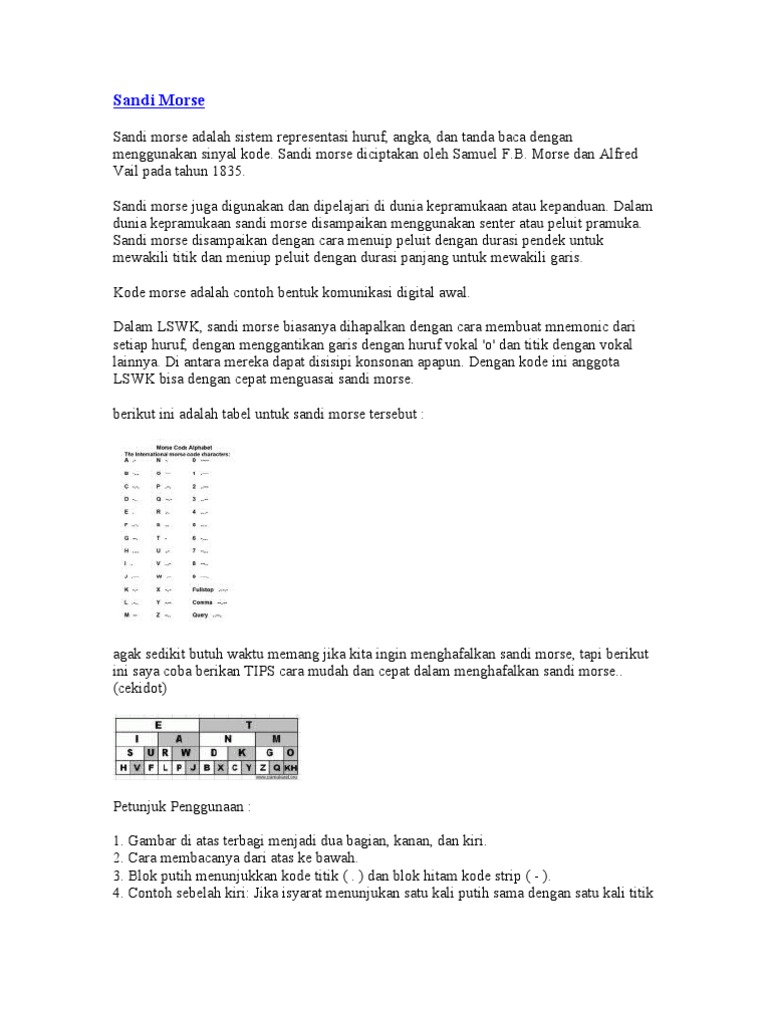 Cara Cepat Mudah Hafal Sandi Morse Pramuka - PDF Free Download
