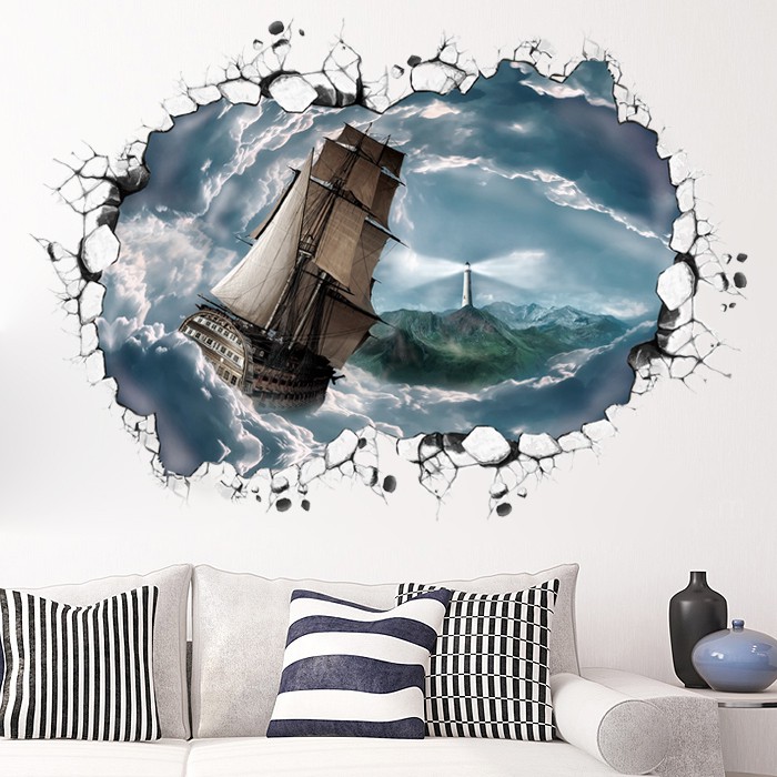 Stiker Dinding 3d Stereo Efek Visual Gambar Pemandangan Kapal Mediteria | Shopee Indonesia