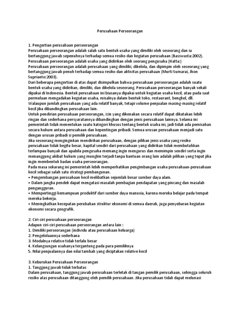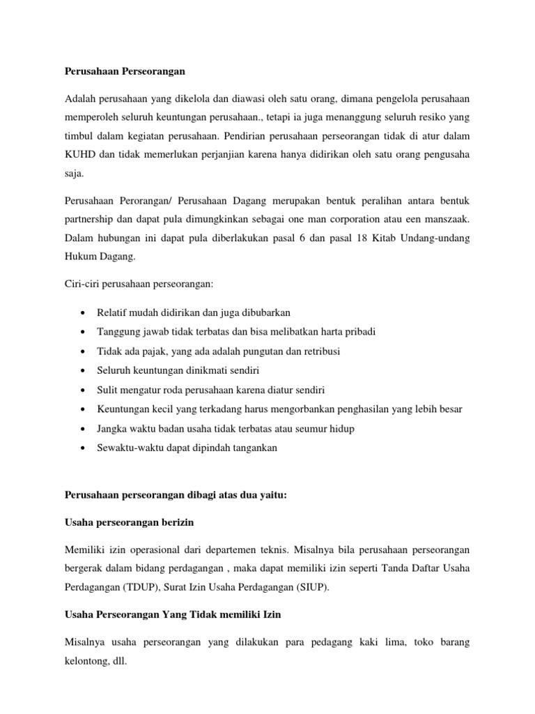 DOC) PERUSAHAAN PERSEORANGAN VS PERSEROAN TERBATAS | Indah Wulandari - Academia.edu