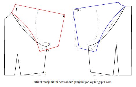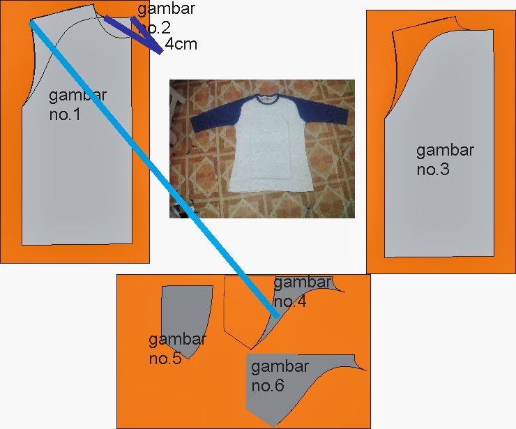 Gambar pola lengan raglan dan keterangan cara membuatnya