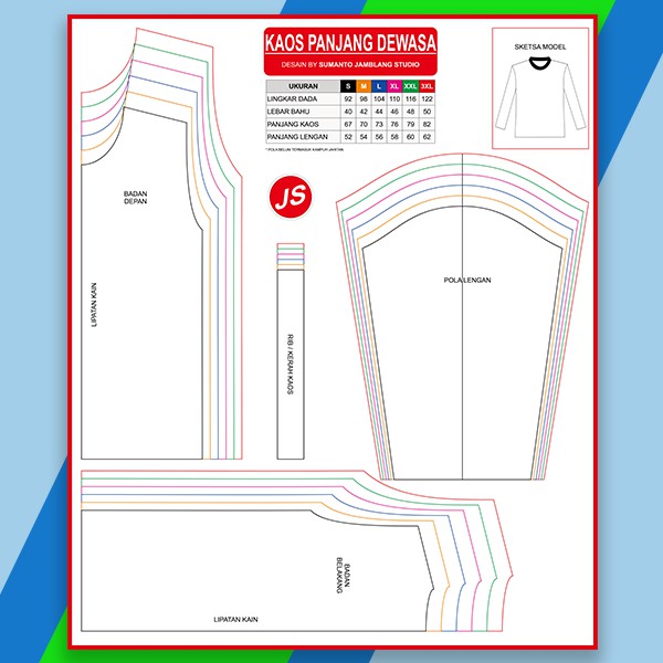 Pola Jiplak Kaos Lengan Panjang Dewasa [ Pola Baju Jamblang Studio ] | Shopee Indonesia