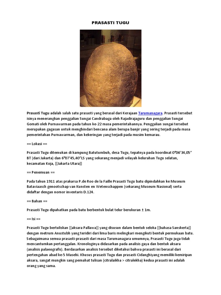 Sketsa - PRASASTI TUGU . Prasasti Tugu adalah salah satu… | Facebook