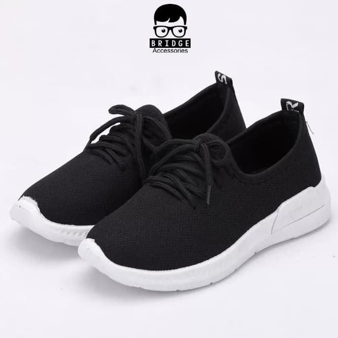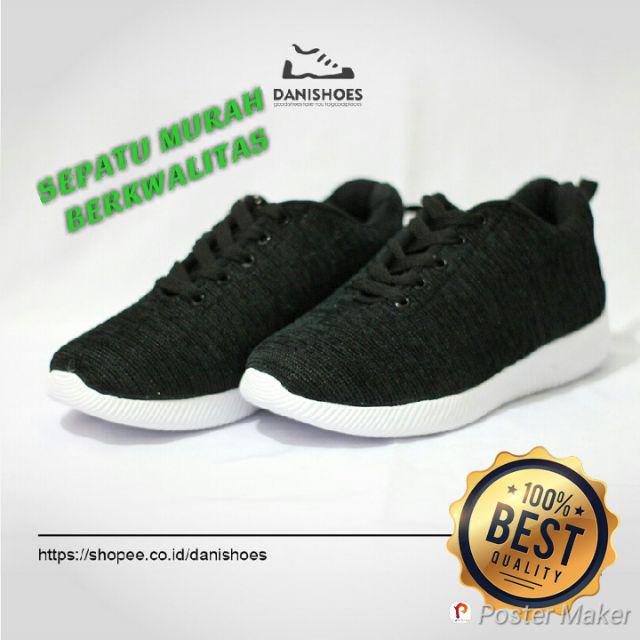 Sepatu Sneakers kasual Pria Wanita Sekolah hitam | Shopee Indonesia