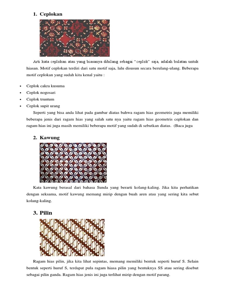 Macam Bentuk Corak Batik Motif Geometris - Senibudayasia