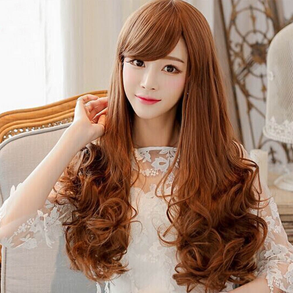 Wig Rambut Wanita Kosplay Poni Rambut Miring Panjang Gelombang Keriting Kuning Muda | Shopee Indonesia