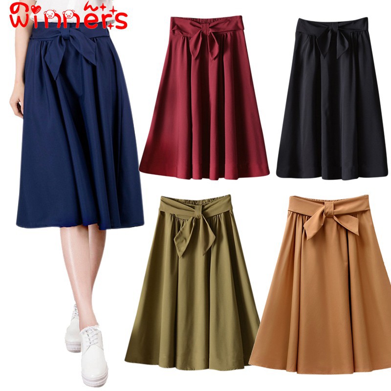 Rok Selutut A-Line Lipit High Waist Elegan Aksen Pita untuk Wanita | Shopee Indonesia