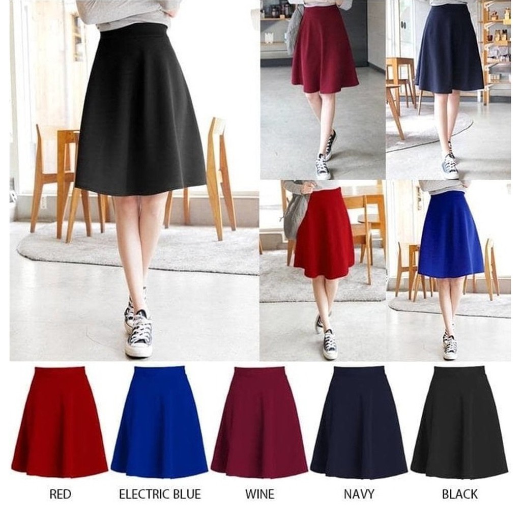 KODE X3 [200gr] BANYAK WARNA MIDI FLARE SKIRT // ROK PENDEK SELUTUT LUTUT MEKAR MURAH SCUBA KULIAH K | Shopee Indonesia