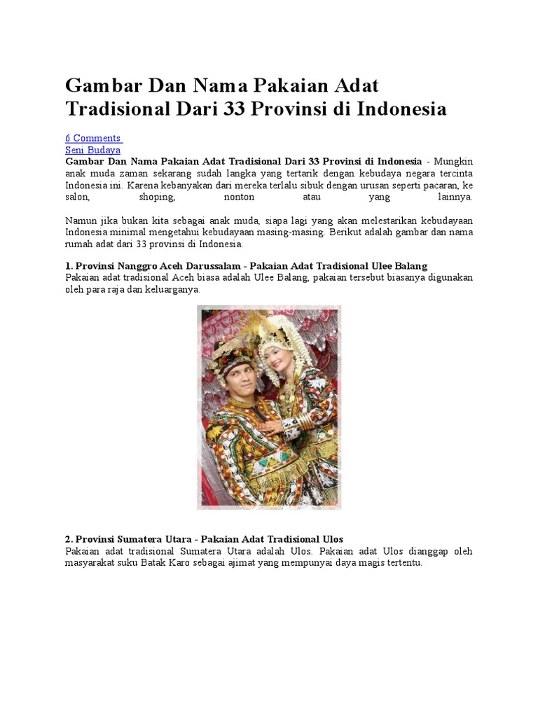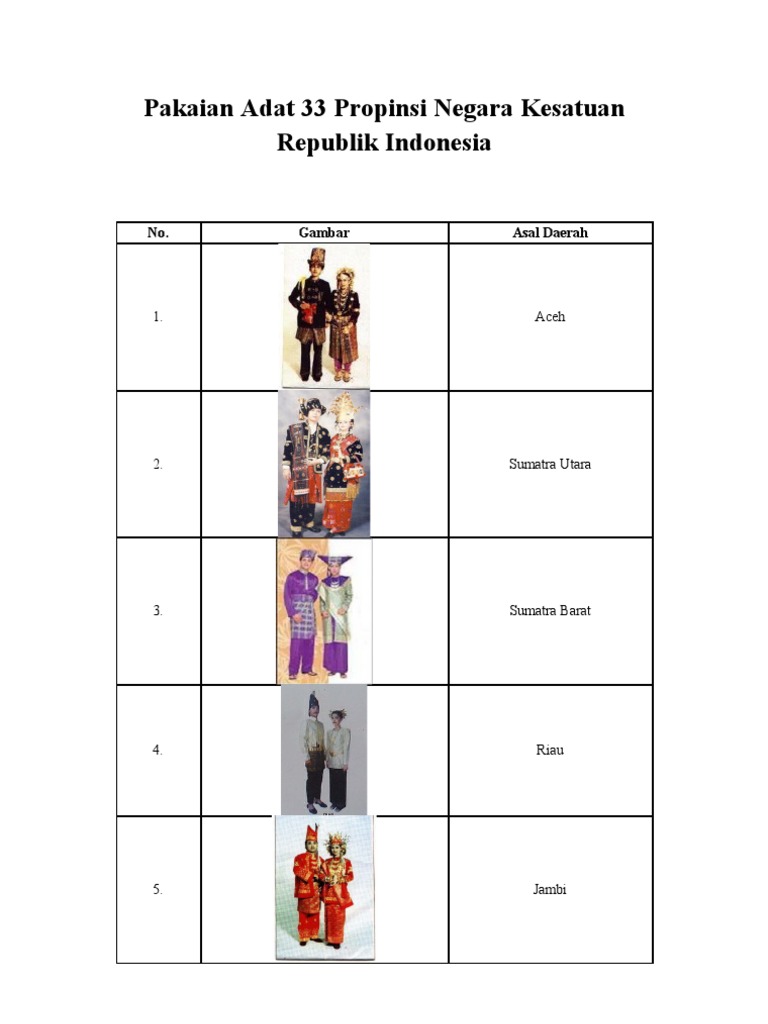 DOC) 34 provinsi di indonesia lengkap, rumah adat, pakaian adat, tari, senjata tradisional.docx | Teja Sukmana - Academia.edu