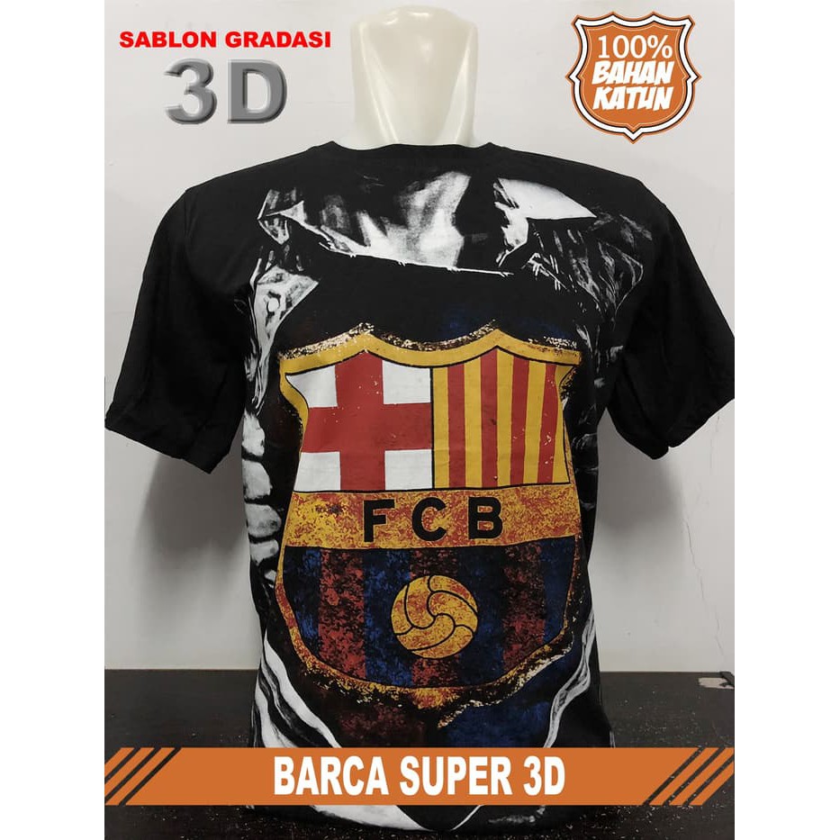 Baju Kaos Bola Distro kaos distro club bola luar negri BARCA SUPER 3D - Hitam - Katun | Shopee Indonesia