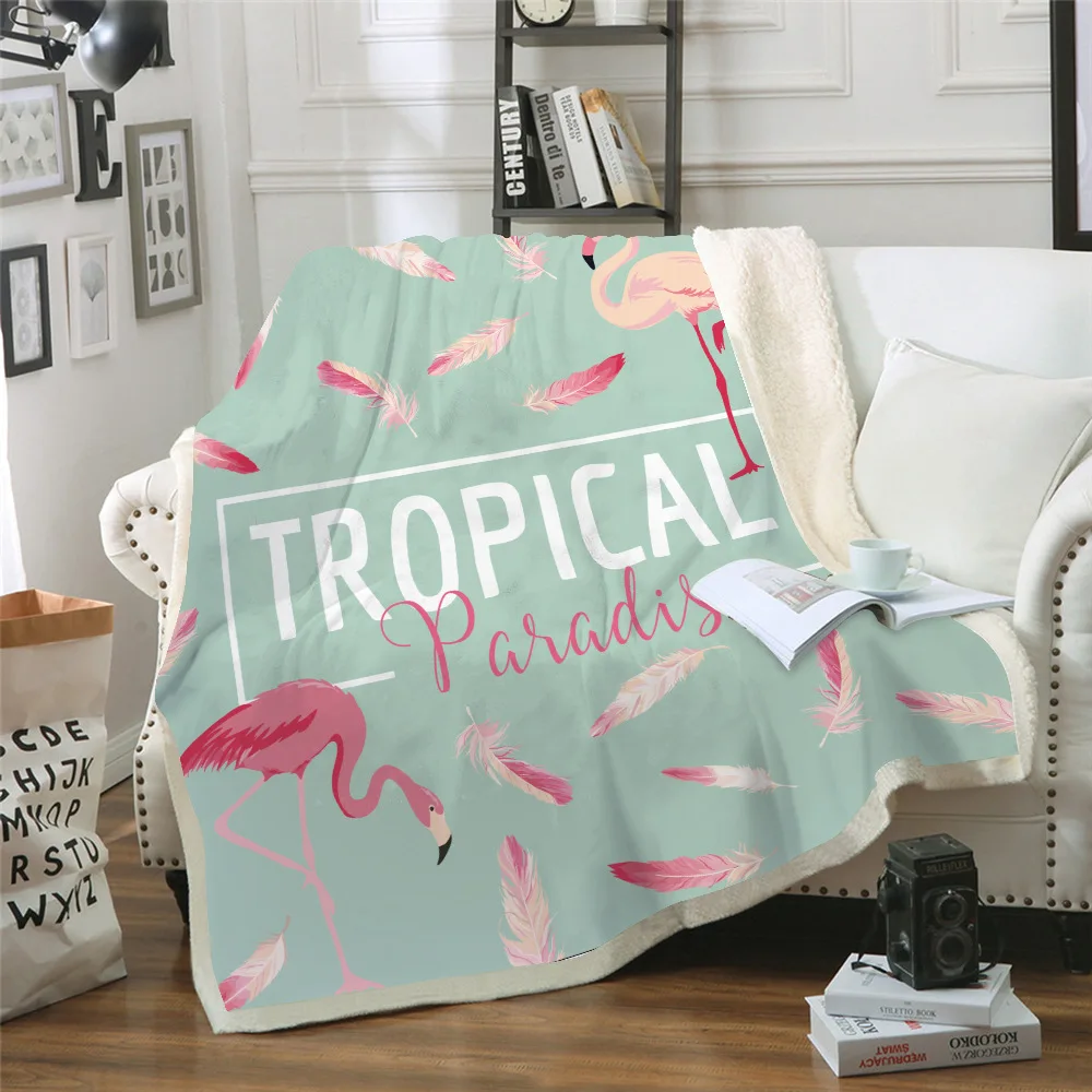 Kartun Lembut Flamingos Gambar Selimut Tebal Double Layer Bulu 3D Digital Dicetak Polyester Hangat Musim Dingin Selimut Penutup|Selimut| - AliExpress