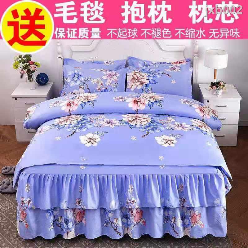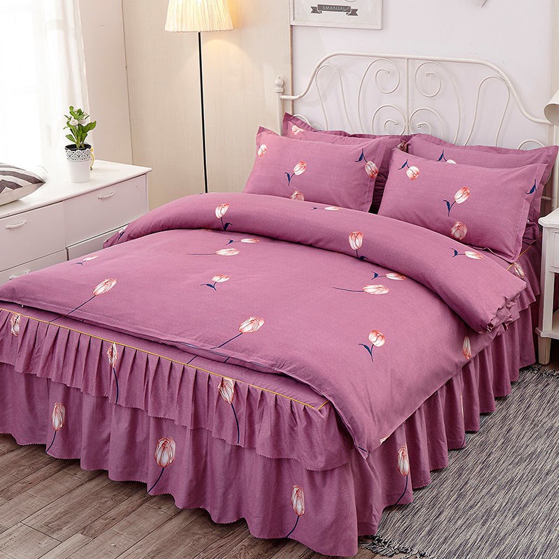 4 Buah Set Tempat Tidur MODERN Katun Lembut Rok Bed Selimut Tebal Hem Gambar Bunga Pengencang Seprai Tekstil Rumah dengan Sarung Bantal Raja Tempat Tidur Ukuran Queen | Lazada Indonesia