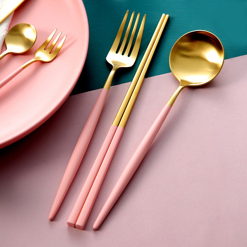 Makanan sendok garpu piring barat dua atau tiga set asrama p | Shopee Indonesia