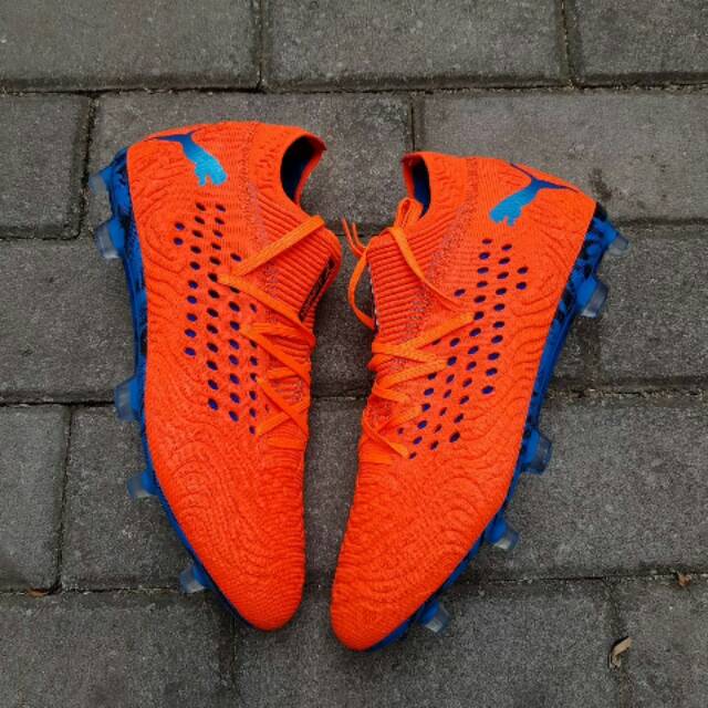Sepatu Bola Puma Future 19.1 Netfit Orange Blast Blue FG | Shopee Indonesia