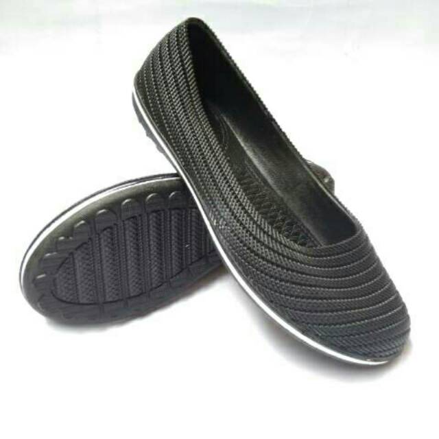 Tokopedia: Jual Sepatu Karet Wanita Full Black ATT Flat Shoes