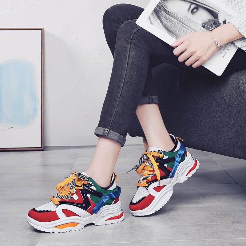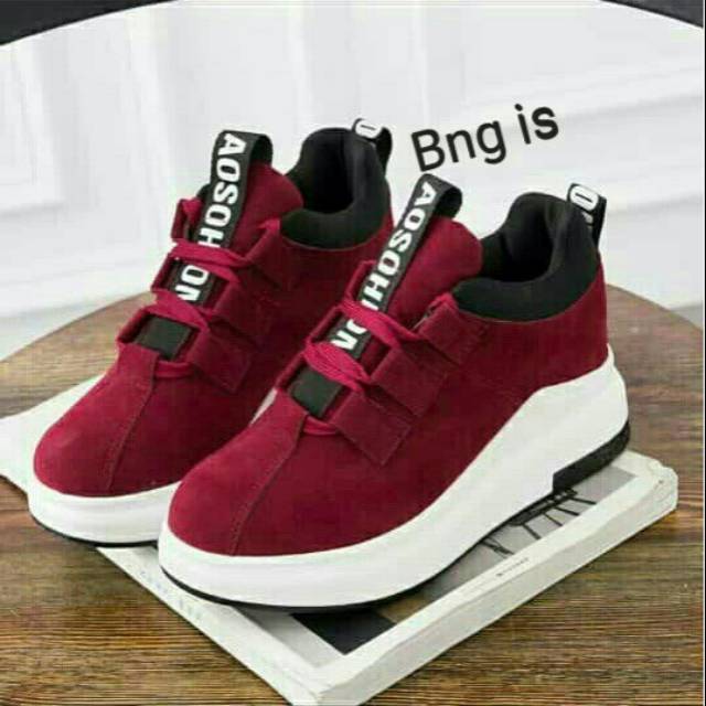 Korea Sepatu Sneakers Wanita Fashion Hak Sepatu Kekinian Warna Hitam/Merah/Putih Kasual Ket | Shopee Indonesia