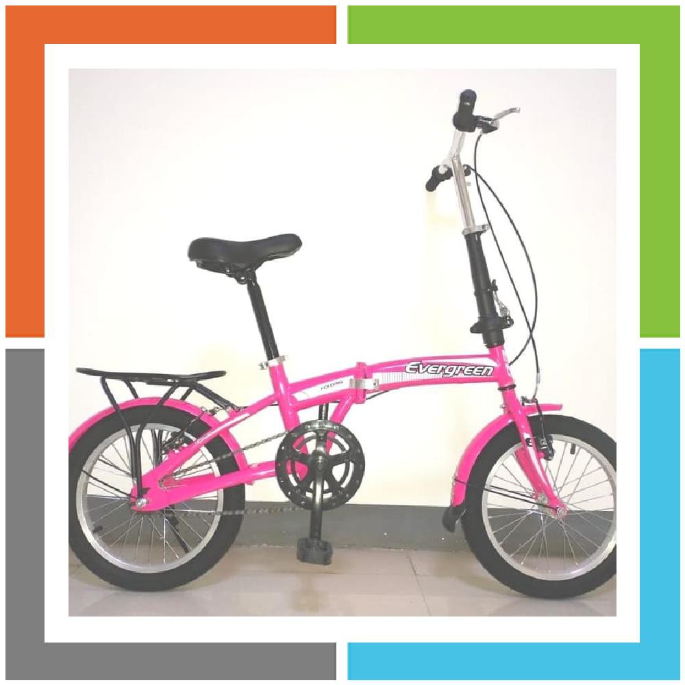 sepeda lipat evergreen 16 - Merah Muda | Shopee Indonesia