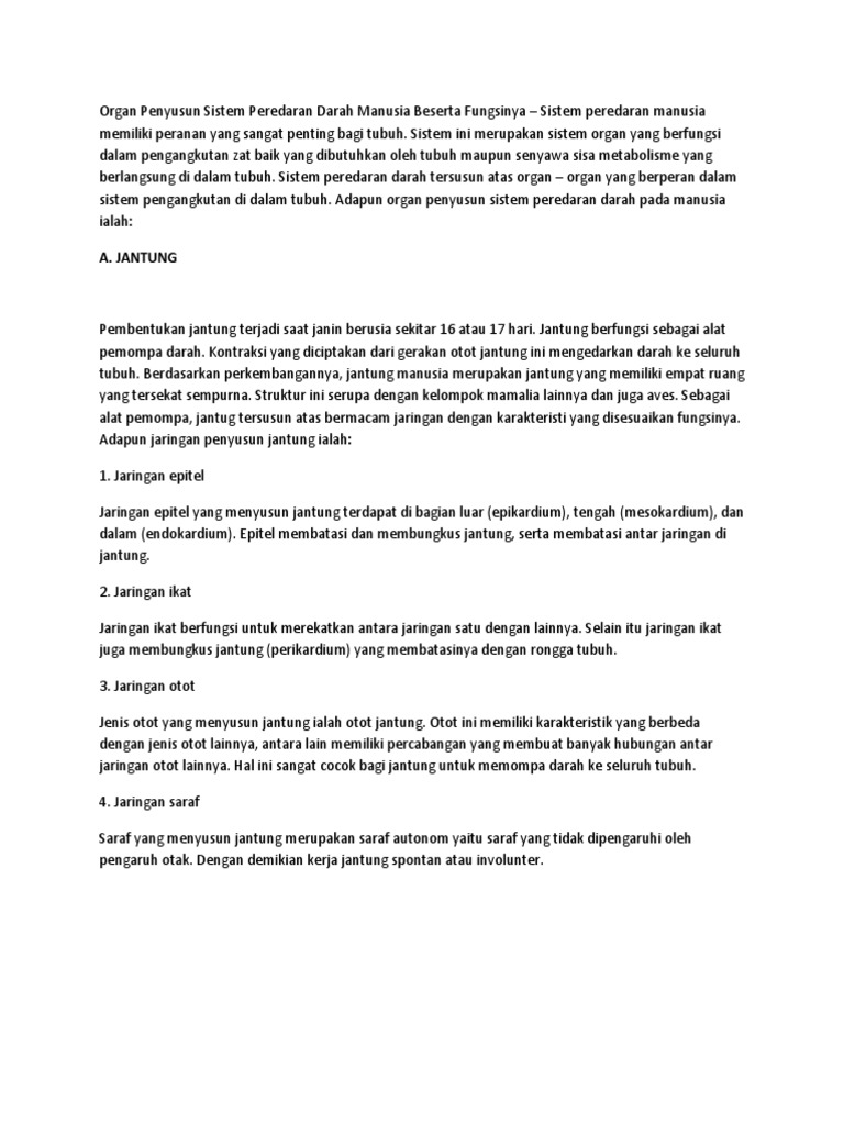 sebutkan 5 organ peredaran darah manusia beserta fungsinya! - Brainly.co.id