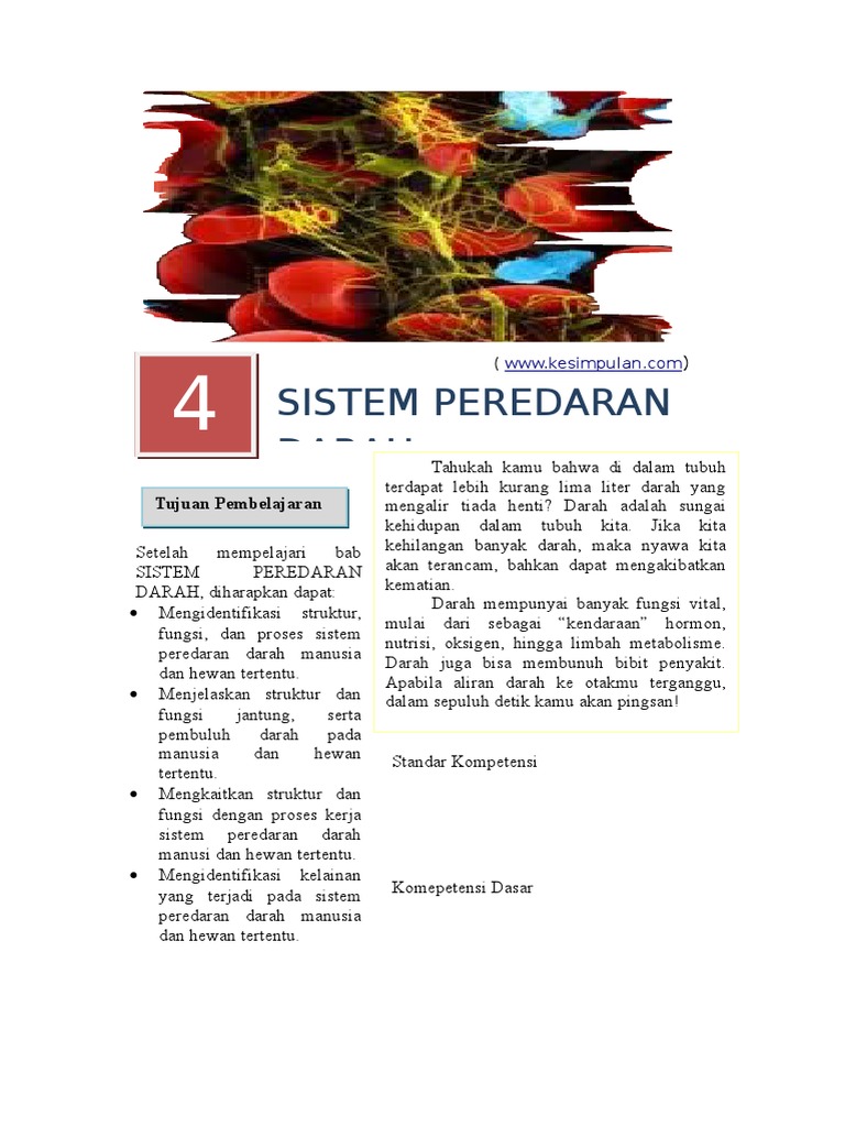 Tujuan Pembelajaran. 1. Dapat menjelaskan 3 komponen penyusun sistem peredaran darah pada manusia. - PDF Download Gratis