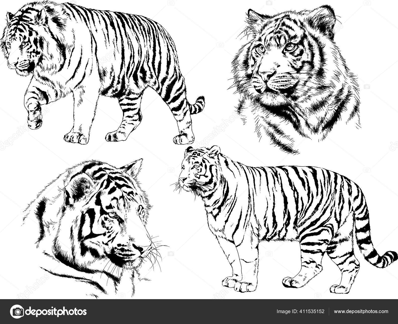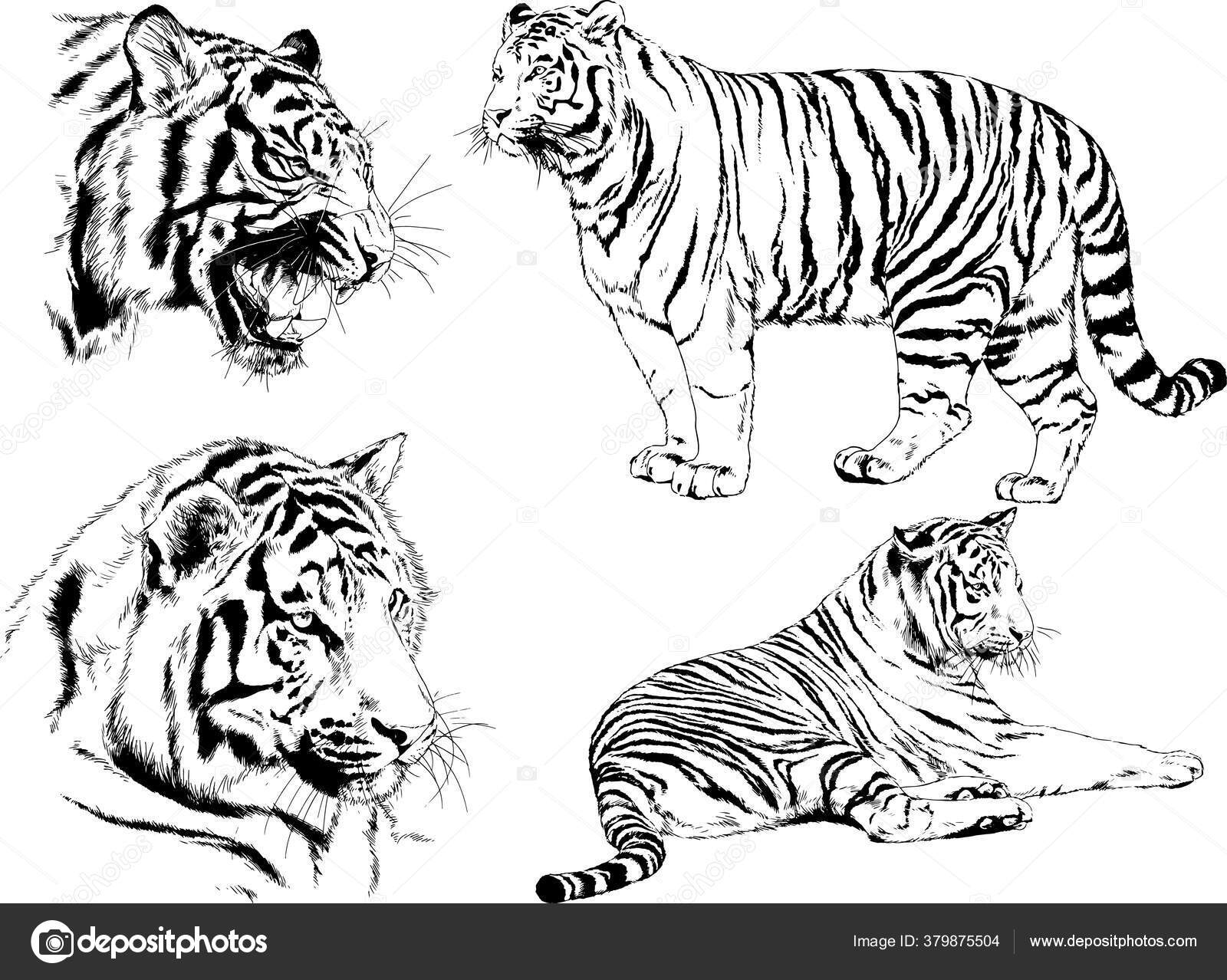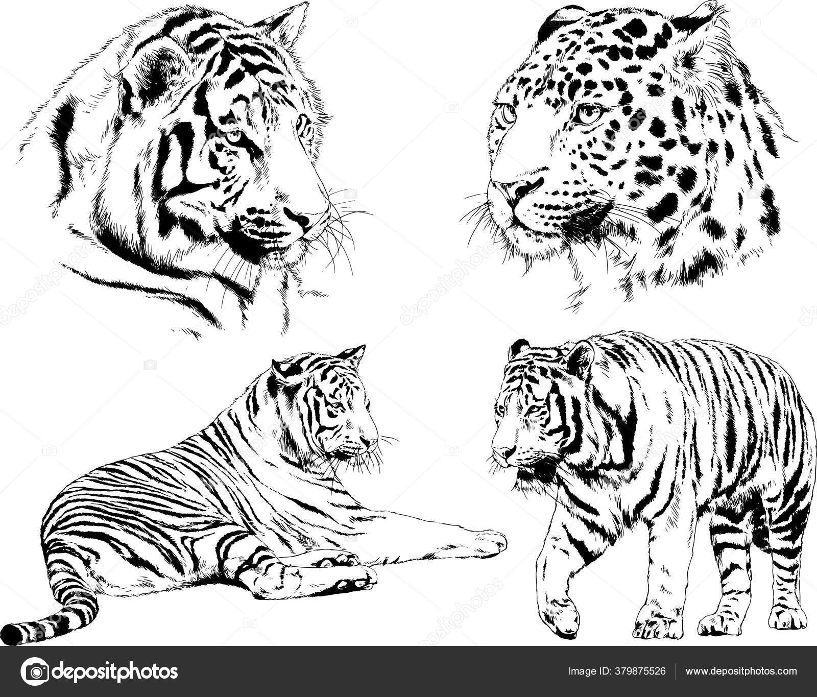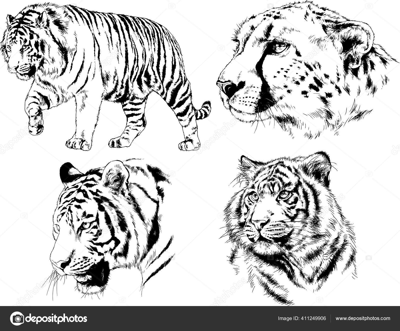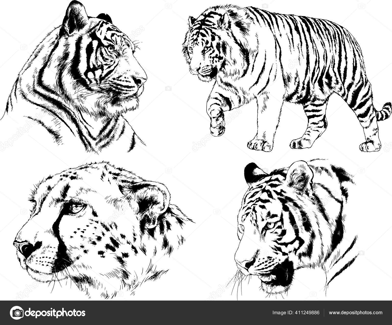 Gambar Vektor Sketsa Predator Yang Berbeda Harimau Singa Cheetah Dan — Stok Vektor © evgo1977 #411249886