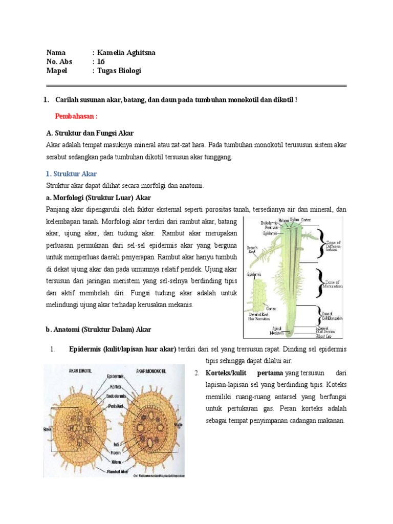Struktur Anatomi Akar Batang Dan Daun Tumbuhan Monokotil Dan Dikotil