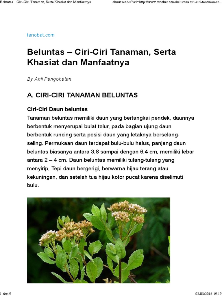 Beluntas Ciri-Ciri Tanaman, Serta Khasiat dan Manfaatnya - PDF Free Download