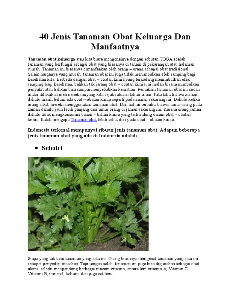 40 Jenis Tanaman Obat Keluarga Dan Manfaatnya